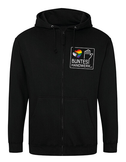 Hoodiejacke, JH050, AWDis, vorne DTF-Druck klein, Rücken groß